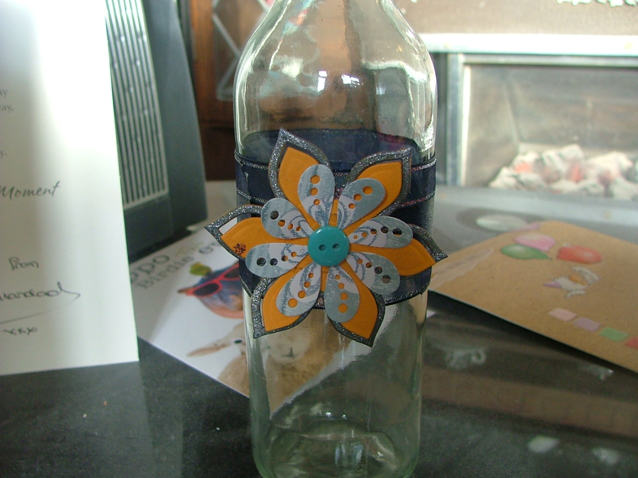 I have made a little glass bottle decoration today - not sure what t do with the bottle now though. Do I use it as a vase, or do something else with it?